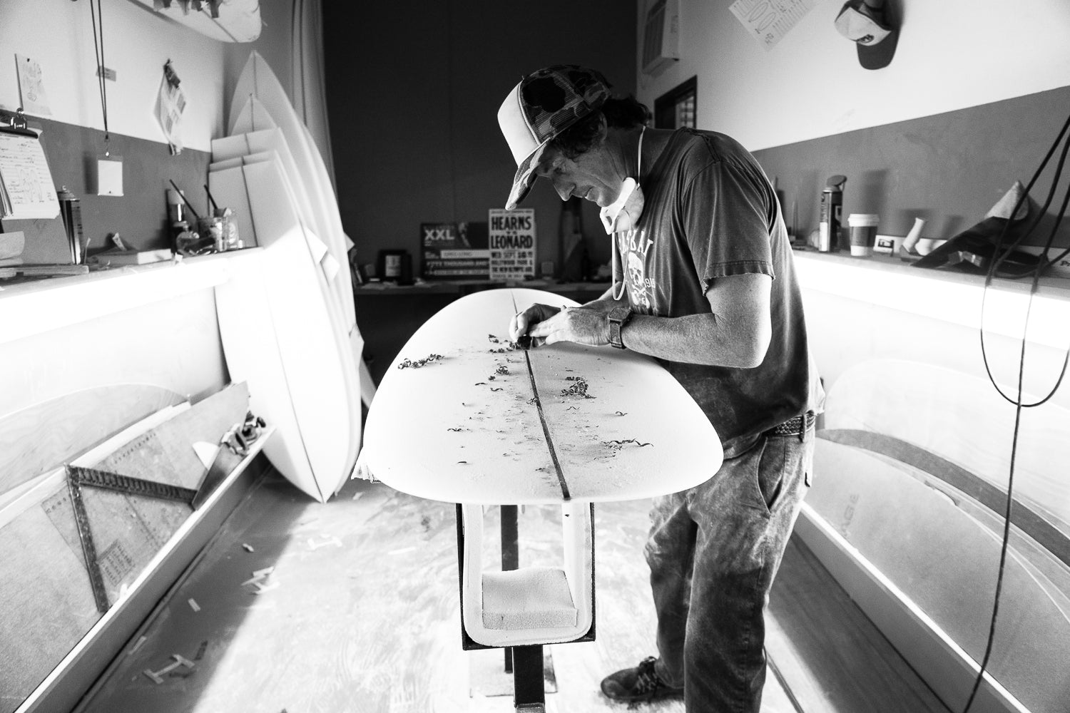 カリフォルニア州サンディエゴ在住のリビング・レジェンド、クリス・クリステンソン。ディック・ブルーワーに才能を見出され、その高いシェイプ技術の基礎を形作り、スキップ・フライやマイク・ディフェンダーファーらの巨匠をリスペクトしつつも、単なる彼らのコピーではない、“オリジナル“なデザインを生み出しています。