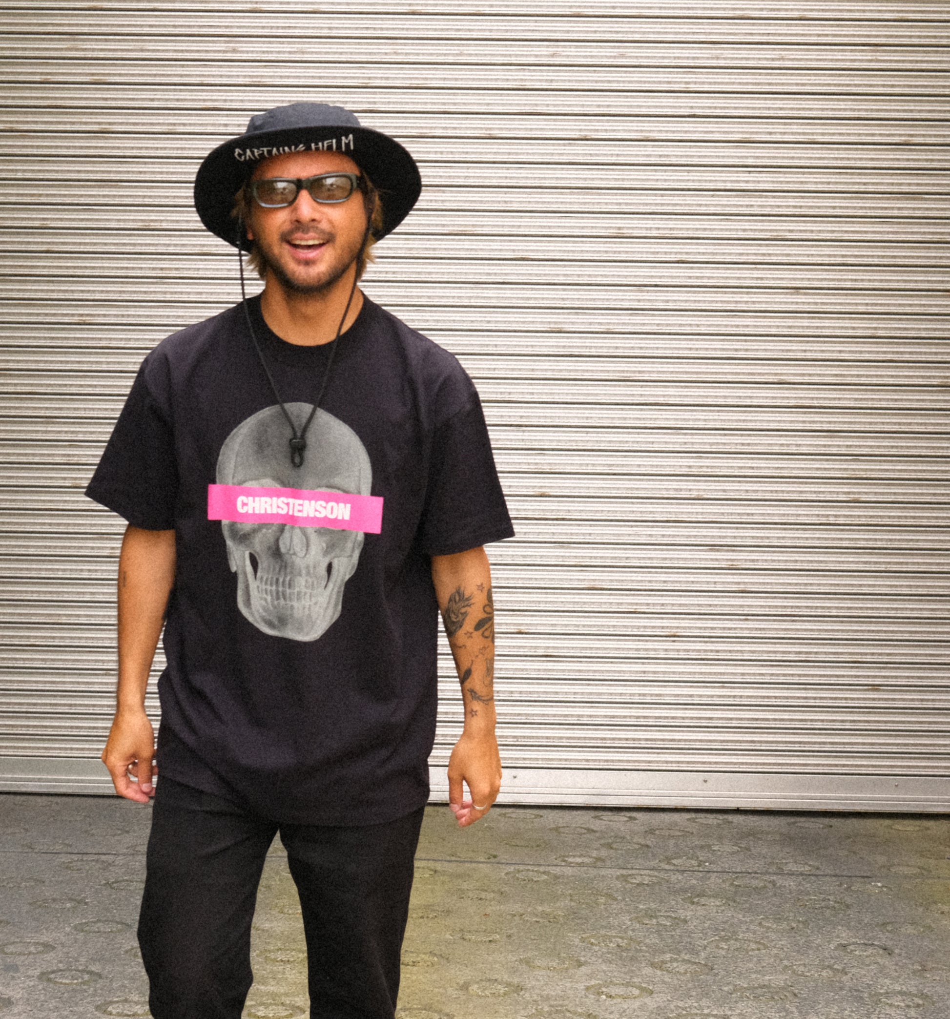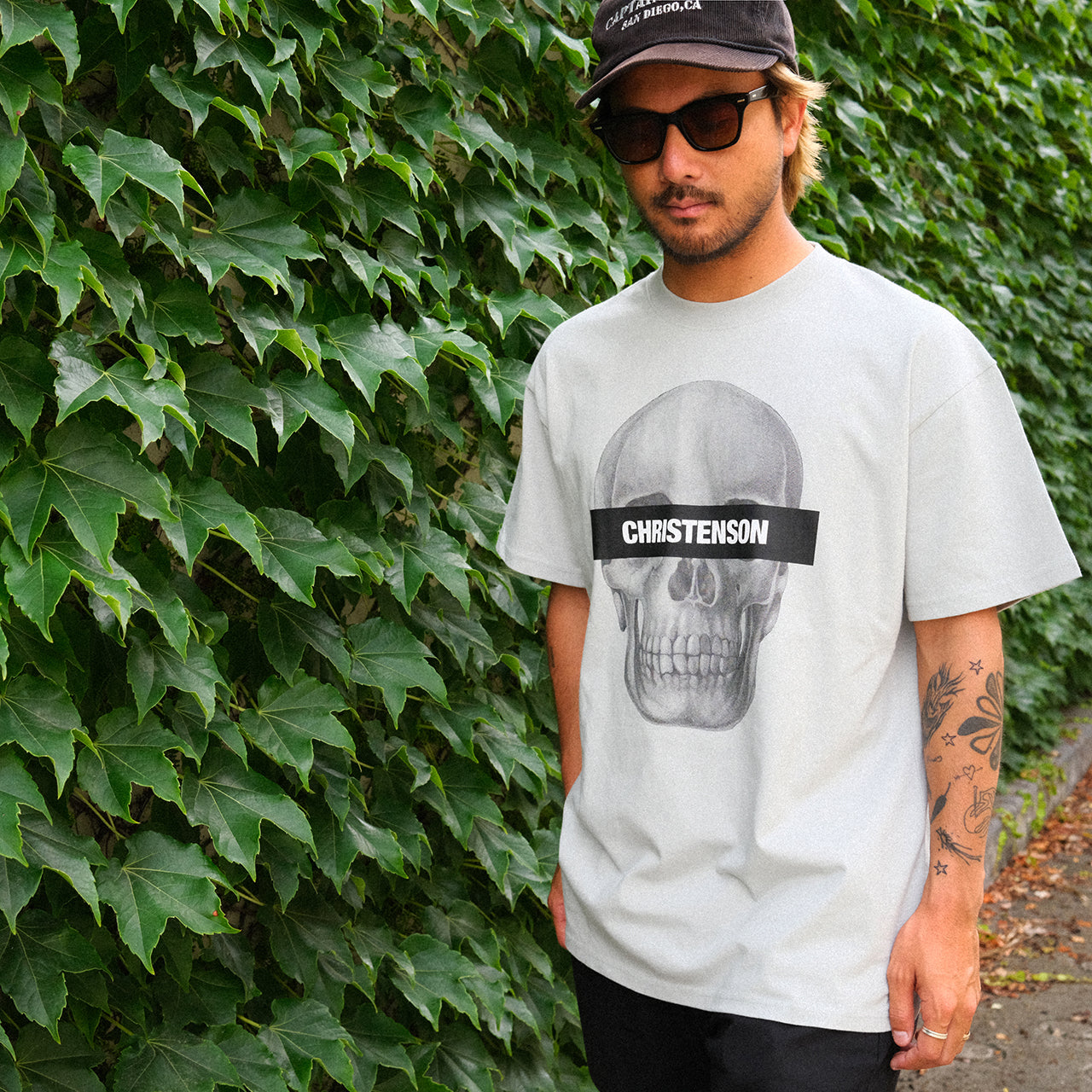 Christensonのアイコンでもあるスカルロゴを全面にプリントしたインパクトあるデザインの1枚