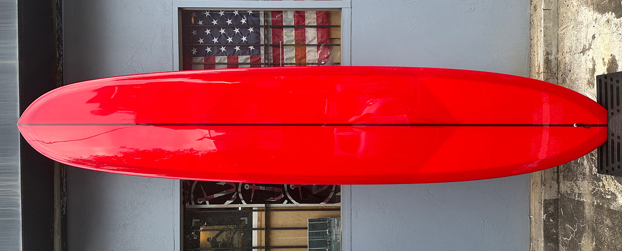 9’0”と短め、シェイプも薄めなので、女性や体重の軽い方におススメのサイズですが、少しサイズのある波でターンを楽しみたい方にもぜひ乗って欲しいシャープなロングボードです。