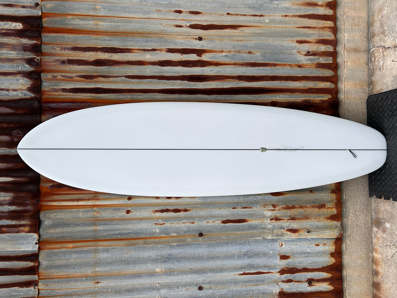 ローロッカーに特徴的なSデッキとわずかにフリップしたノーズの組み合わせ。センターの厚みはキープしつつ、レールは薄めでよりスピードに特化したアレンジが施されている。クリスのパーソナルは6'6" で、前方寄りに設置されたシングルボックス・フィンには、9.5インチのフレックスフィンを推奨。