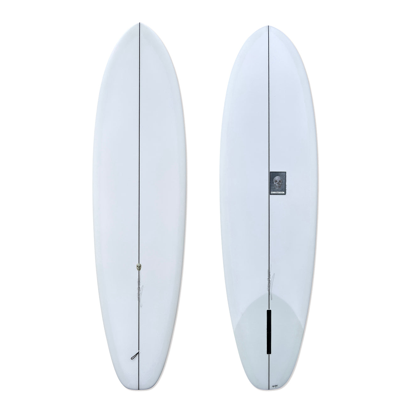 クリステンソンのディスプレイスメント・ハル、サブマリーナーのアップデート版。ミッドレングス3大モデル(C-Bucket, Ultra Tracker, The Huntsman)に追加されたエッグだが、初心者向けではなくいわゆる玄人好みのテイストが特徴。ローロッカーに特徴的なSデッキとわずかにフリップしたノーズの組み合わせ。センターの厚みはキープしつつ、レールは薄めでよりスピードに特化したアレンジが施されている。クリスのパーソナルは6'6" で、前方寄りに設置されたシングルボックス・フィンには、9.5インチのフレックスフィンを推奨。